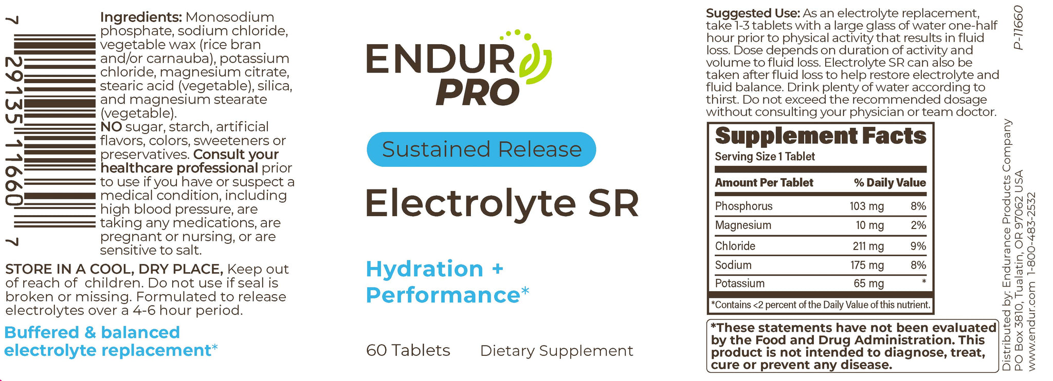 Electrolyte SR is a sustained-release dietary supplement featuring a balanced & buffered electrolyte formula (sodium, chloride, potassium, magnesium, and phosphorus). The SmartMatrix™ proprietary vegetable-based, wax-matrix tablet ensures electrolytes release in a slow, steady manner over 4 to 6 hours as the body needs them to better absorb and retain fluids consumed.